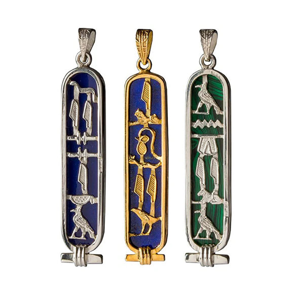 Handcrafted Egyptian Cartouche jewelry, Personalized with your name in hieroglyphics.